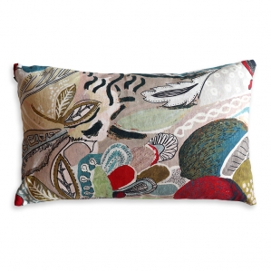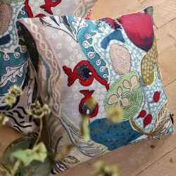 Les coussins sont tirés du tissu au mètre, le motif varie en fonction du placement à la coupe.