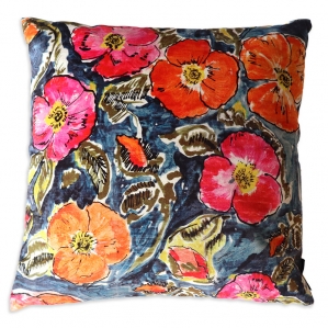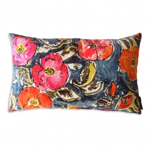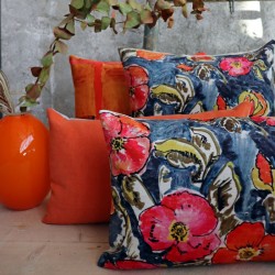 Un imprimé moderne aux traits naïfs, Poppies et ses couleurs bleu marine, rose et orange, se mariera aussi bien avec des tons chauds, que froids..