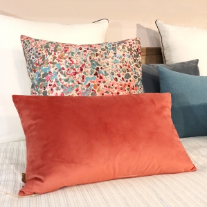 Les coussins sont tirés du tissu au mètre, le motif varie en fonction du placement à la coupe.