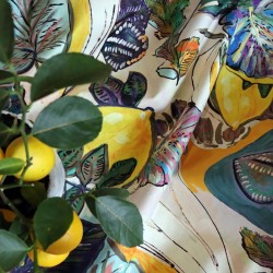 Ambiance acidulée et contrastée avec ce motif somptueux et poétique, sur un support velouté.
