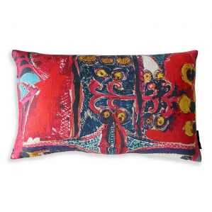 Entre le Wax africain et le Batik javanais, ce motif fort en caractère fait ressortir distinctement le geste du pinceau de la créatrice.