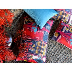 Les coussins sont tirés du tissu au mètre, le motif varie en fonction du placement à la coupe.