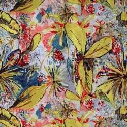 Un graphisme explosif d’une végétation vibrante, avec un mariage de couleurs douces et denses.