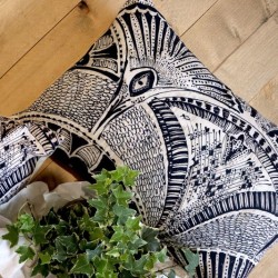 Les coussins sont tirés du tissu au mètre, le motif varie en fonction du placement à la coupe.