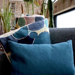 Les coussins sont tirés du tissu au mètre, le motif varie en fonction du placement à la coupe.