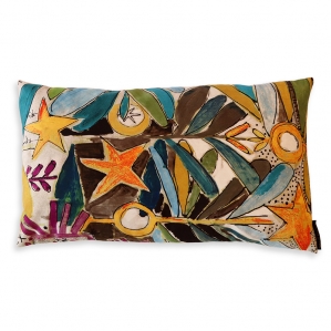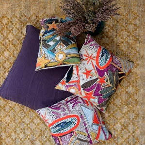 Les coussins sont tirés du tissu au mètre, le motif varie en fonction du placement à la coupe.