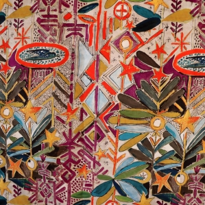 Grigri coloré, amulette est à mi chemin entre un wax et un batik, il invite au voyage et au rêve.