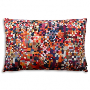 Les coussins sont tirés du tissu au mètre, le motif varie en fonction du placement à la coupe.