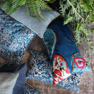 Les coussins sont tirés du tissu au mètre, le motif varie en fonction du placement à la coupe.