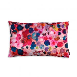 Les coussins sont tirés du tissu au mètre, le motif varie en fonction du placement à la coupe.