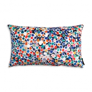 Les coussins sont tirés du tissu au mètre, le motif varie en fonction du placement à la coupe.
