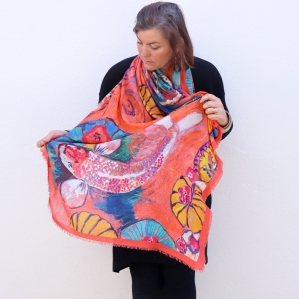 Ce grand foulard est l’accessoire idéal pour rehausser vos tenues. Le mélange laine et soie lui confère une douceur incroyable. Finition frangée, intemporelle et d’une grande légèreté.