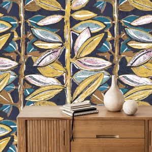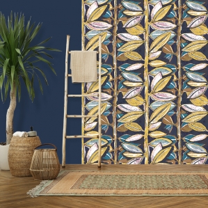 Des couleurs tendances et un motif contemporain, un motif qui s’accordera à merveille avec des teintes jaune moutarde et bleu canard.