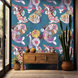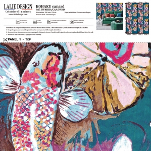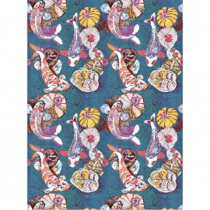 Très emblématiques, les carpes Koï japonaises, ici dessinées par la créatrice Marie-Adeline Riche, nous offrent un véritable tableau.