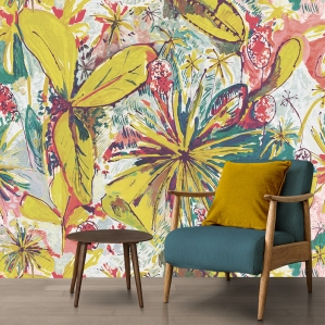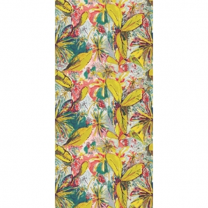 Un graphisme explosif d’une végétation vibrante, avec un mariage de couleurs douces et denses.