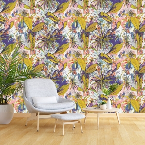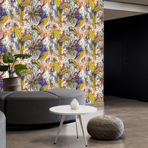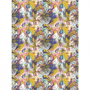 Un graphisme explosif d’une végétation vibrante, avec un mariage de couleurs douces et denses.