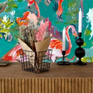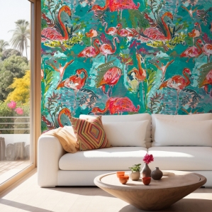 PAPIER PEINT - FLAMINGO cyan - Panoramique