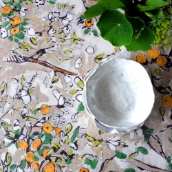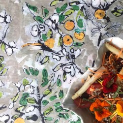 Doux et délicat, Pomme d’Api nous transporte dans un verger féerique où les pommiers offrent à notre regard d’appétissants fruits colorés. Vif et Gourmand ce tissu se prête à toutes les envies.